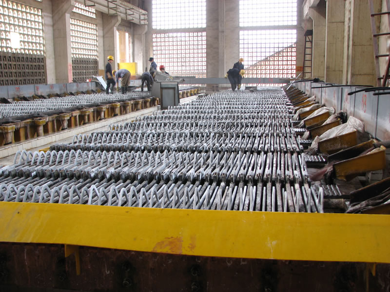 | سبيكة ثنائية: Pb93.9%-Sb6.0% | قضبان آنود للاستخلاص الكهربي للنحاس |